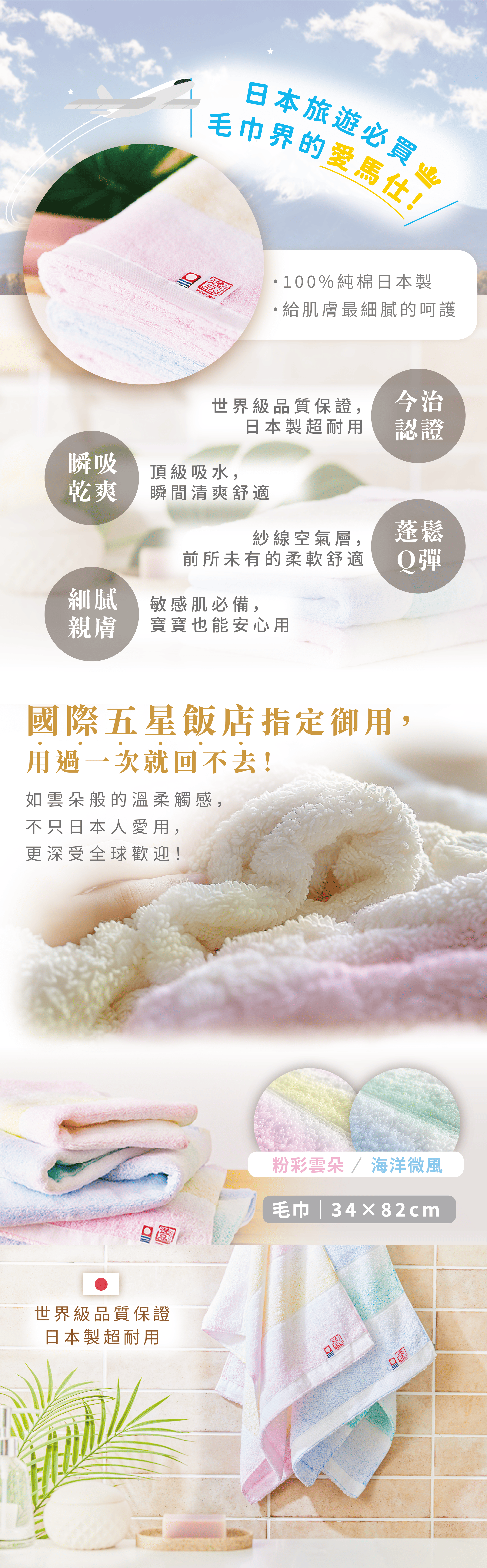 來自日本百年毛巾之都「今治」,以細膩工法和頂級純棉打造,給你前所未有的柔軟觸感。