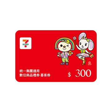 【統一集團通用】 300元 7-ELEVEN數位商品禮券 喜客券(輸入序號後.可分次使用)