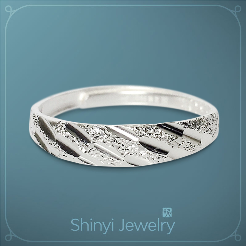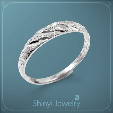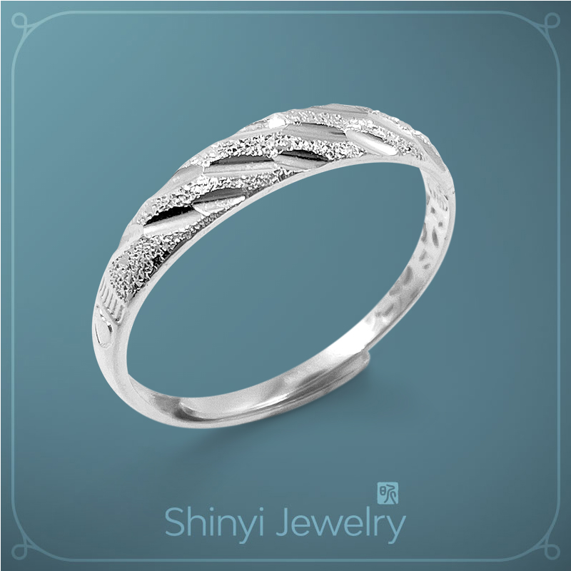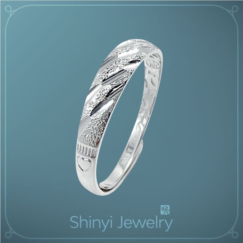 品名:閃耀刻花補財庫足銀戒