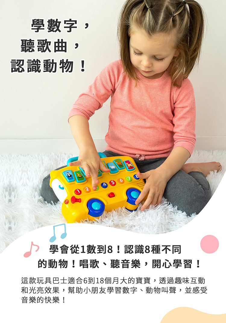 寶寶音樂巴士,學數字,聽歌曲,辯識動物!學會從1數到8!