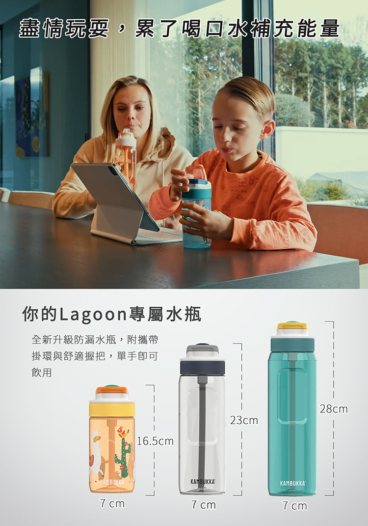 全新升級防漏水瓶,附攜帶掛環與舒適握把,單手即可飲用