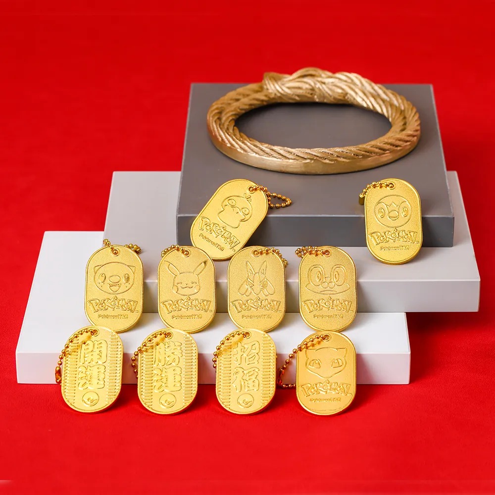 閃亮金小判吊飾背面搭配不同的開運字設計
