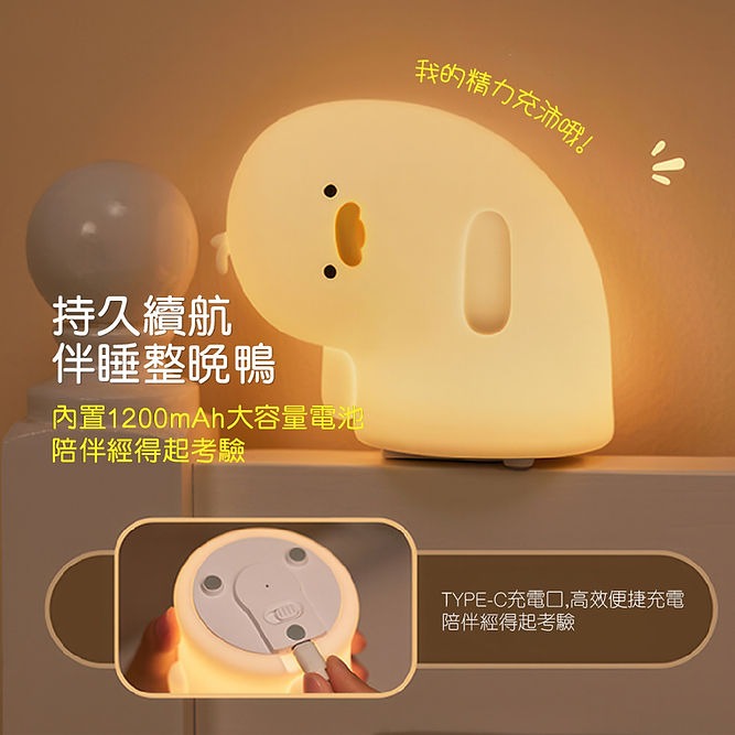 MUID呆呆鴨小夜燈硅膠兒童伴睡拍拍燈創意可愛新奇特禮品床頭燈