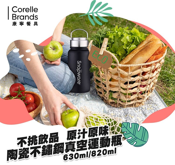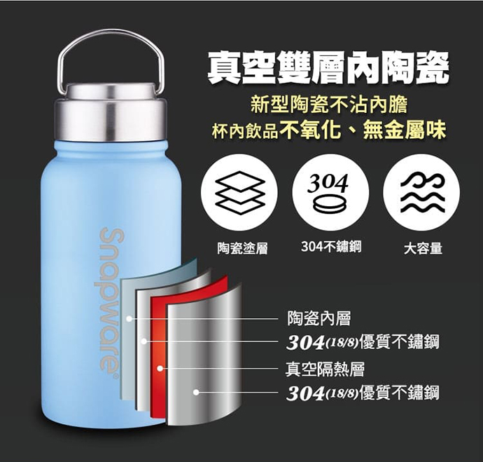 生日【Snapware康寧密扣】陶瓷不鏽鋼超真空保溫運動瓶 820ml