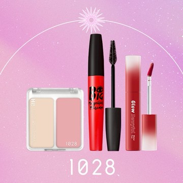 1028唇唇欲凍持色水光唇釉+Hi! LIGHT 3D提亮腮紅澎澎餅+超級大眼放大鏡睫毛膏EX