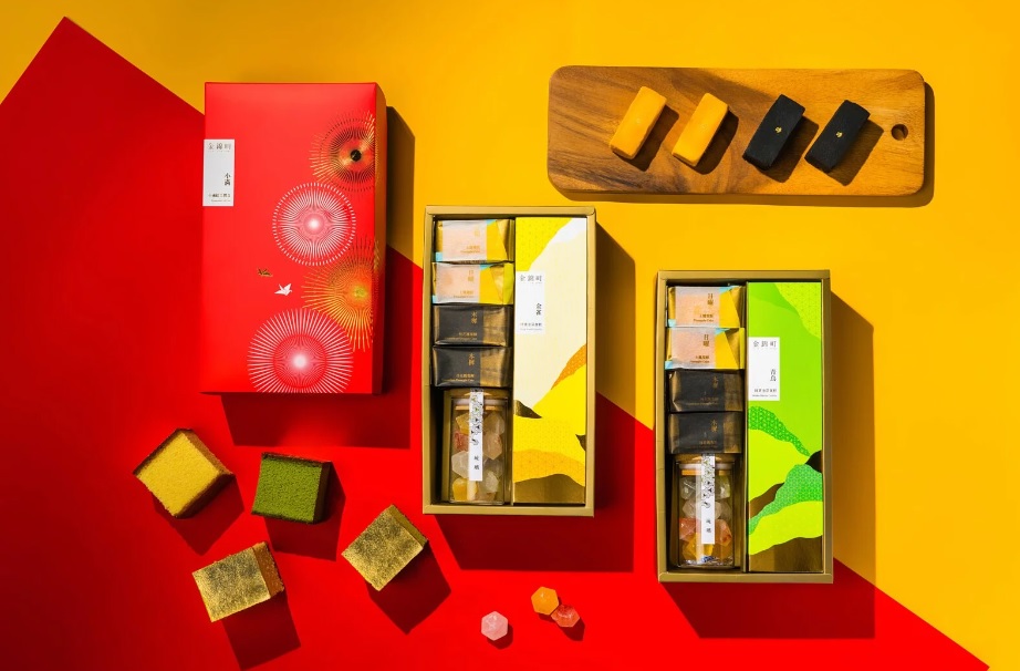 - 金箔蜂蜜蛋糕一條(金\青鳥) + 鳳梨酥八入(日曜4顆,木樨4顆)+ 琉璃琥珀糖一入(小罐)