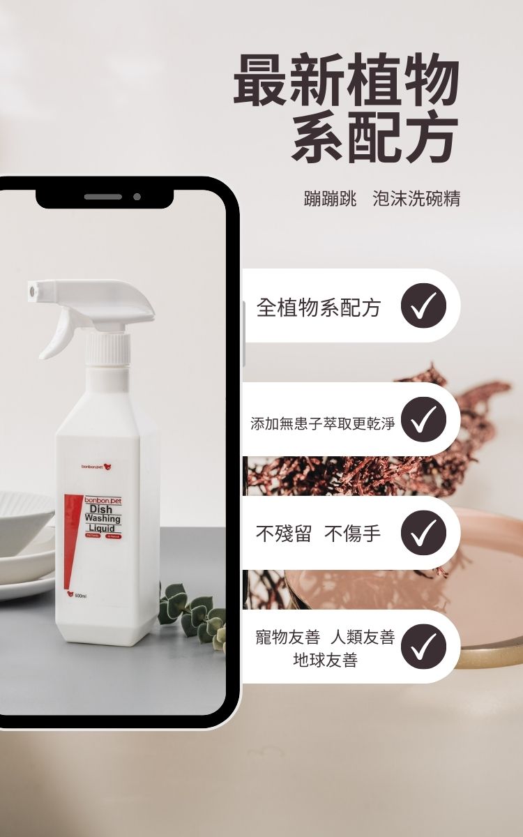 寵物家庭適用,地球友善配方,泡沫去污溫和不傷手,用植萃力量,安全守護毛孩飯碗!