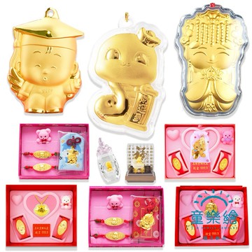 名稱:彌月黃金禮盒 兒童套組多選 約重0.1錢 (999純金 滿月 御守 音樂禮盒 水晶)
