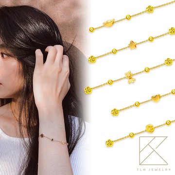 【TLH】黃金墜手鍊 純金999 多選 山茶花雙鑽 約重0.03錢±0.01(生日禮 情人節 )