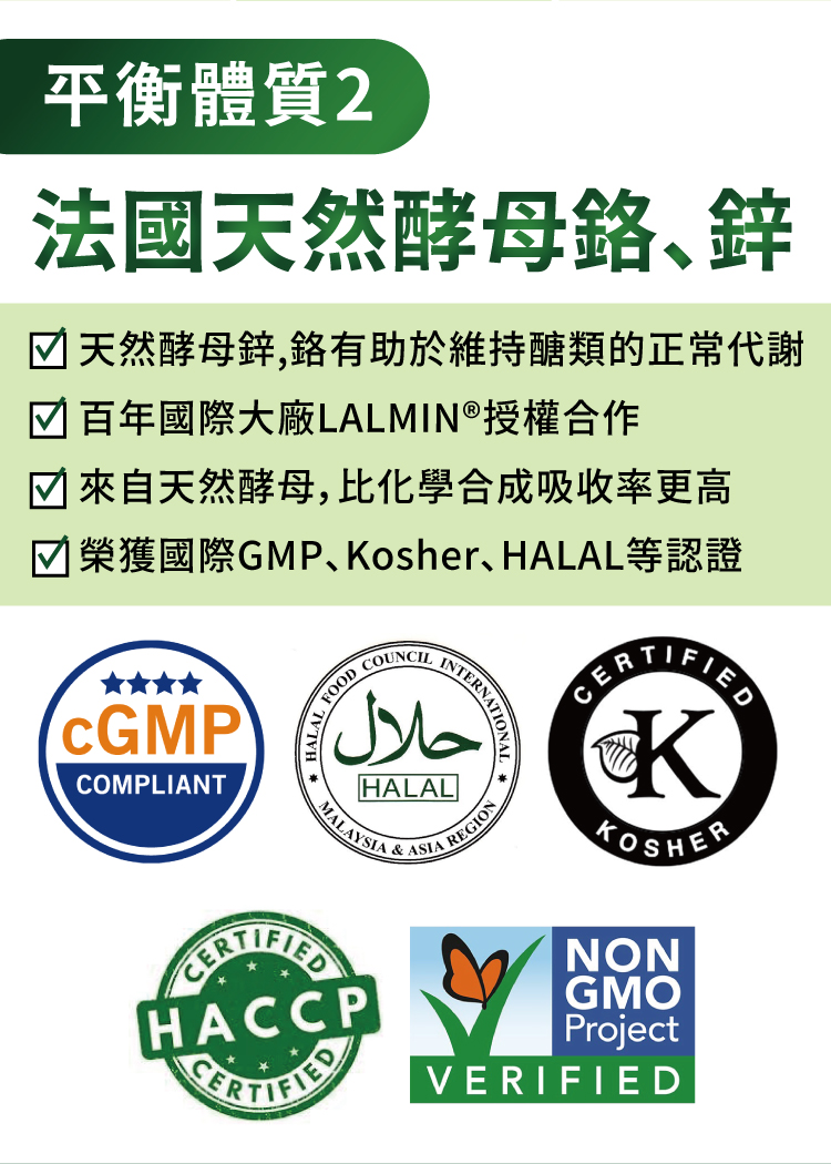 內容物成分:山瓜萃取物、玉米來源可溶性纖維、銘酵母、鋅酵母、大麥萃取物、武靴葉萃取物、桑葉萃取物