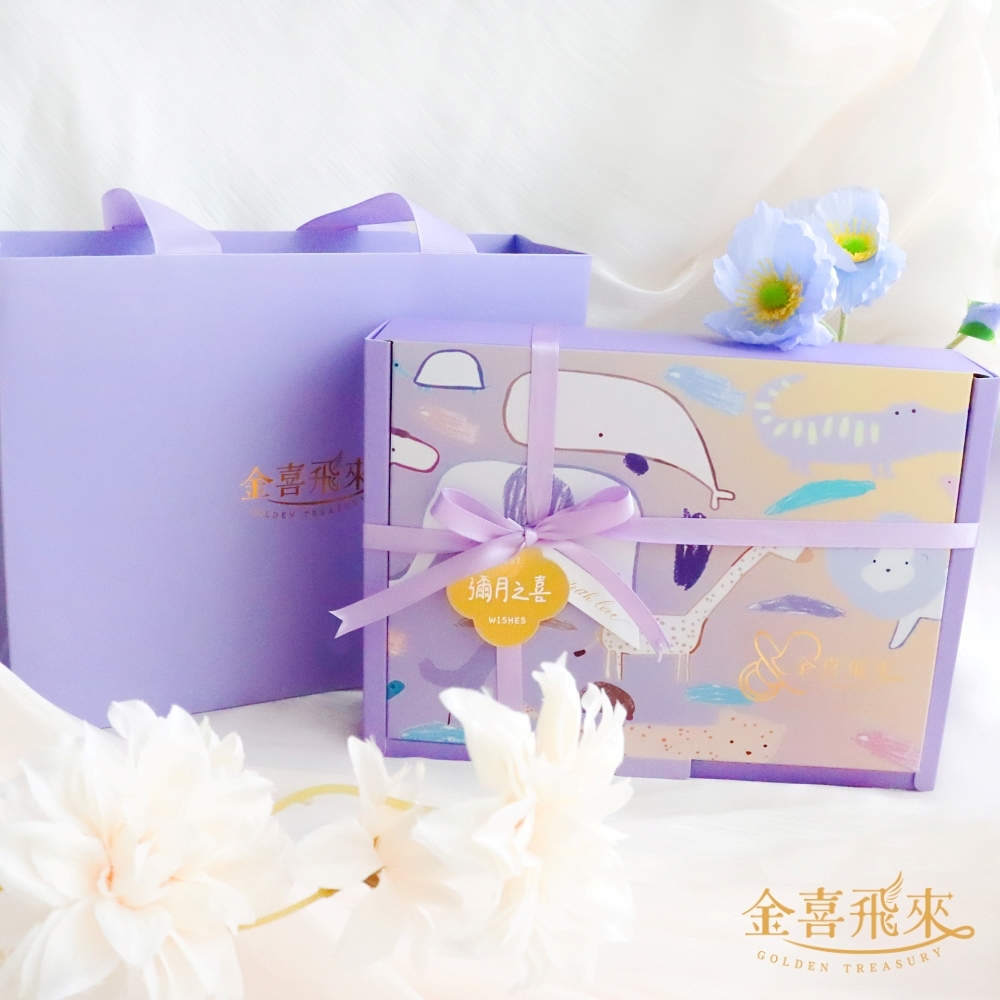 彌月款產品配件:彌月品牌首飾禮盒、彌月提袋、保證卡、卡片、手巾、絨布飾品袋