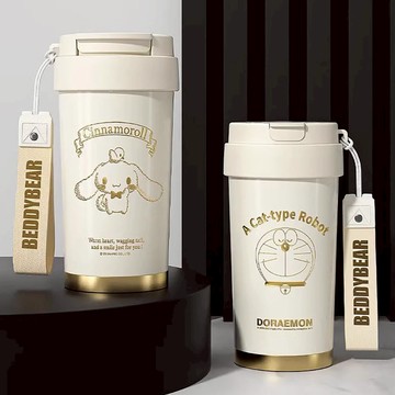 辦公室提神法寶【BEDDY BEAR 杯具熊】卡通聯名輕心保溫咖啡杯 (共3款可選) 聖誕快樂 聖誕交換禮物 哆啦A夢 KITTY 大耳狗 保溫壺 一杯雙飲 長效保溫 上班族 咖啡提神 環保杯 附提繩