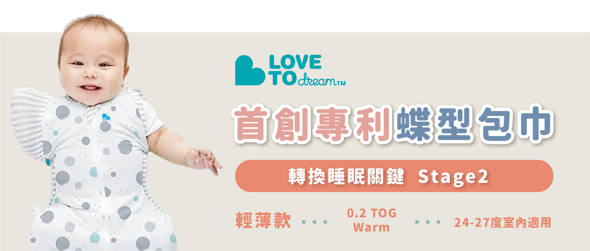 來自澳洲蝶型包巾Love To Dream,已成功協助無數新生家庭克服最頭痛的哄睡寶寶難題。 源於對寶寶健康嚴格把關的堅持,蝶型設計全球專利來自全球育兒專家建議及相關研究報告佐證。問世以來獲獎無數,協助多項新生兒生命研究。 Love To Dream 將自由還給寶寶,安心留給爸媽,睡眠還給全家。在台灣更成為傳說中新手爸媽必備的過夜神器,蝴蝶包巾、懶人包巾都是大家對LOVE TO DREAM蝶型包巾的統稱。
