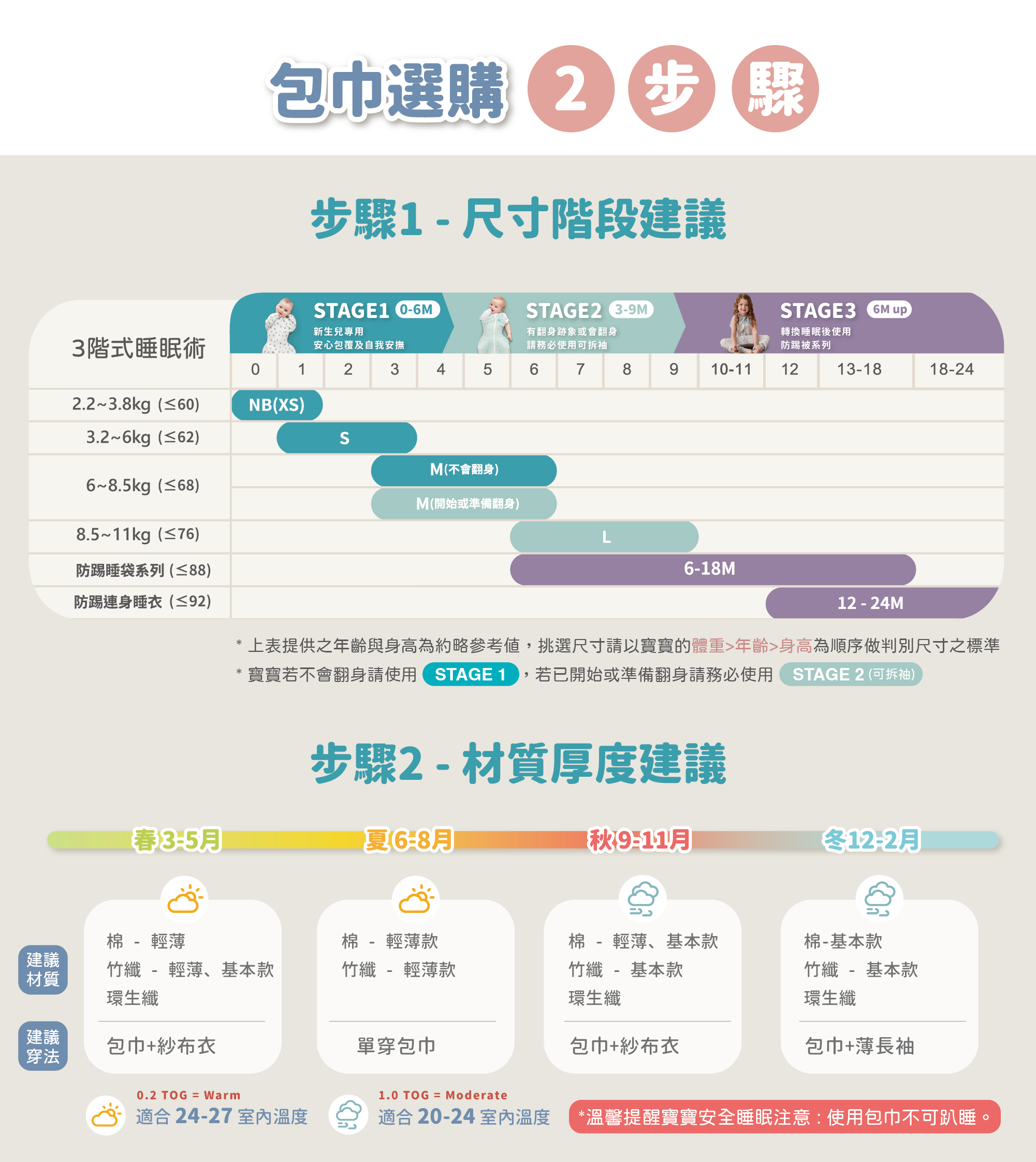 6.當小孩有開始翻身的跡象時請更換到Stage2階段2使用。