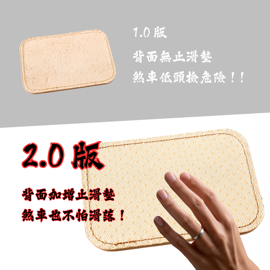 全新 2.0 升級: 針對前代痛點改良!背面全面加裝專業止滑墊,即使遇上緊急煞車,也不必彎腰去腳踏墊撿牌子,安全又省心。