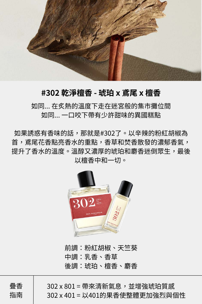 品名:【Bon Parfumeur】愛的溫度 在氣味裡❤ 辛香迷蘊 #302 | 琥珀 x 鳶尾 x 檀香 | 中性淡香精30ml | 可疊 木質調 x 東方花香