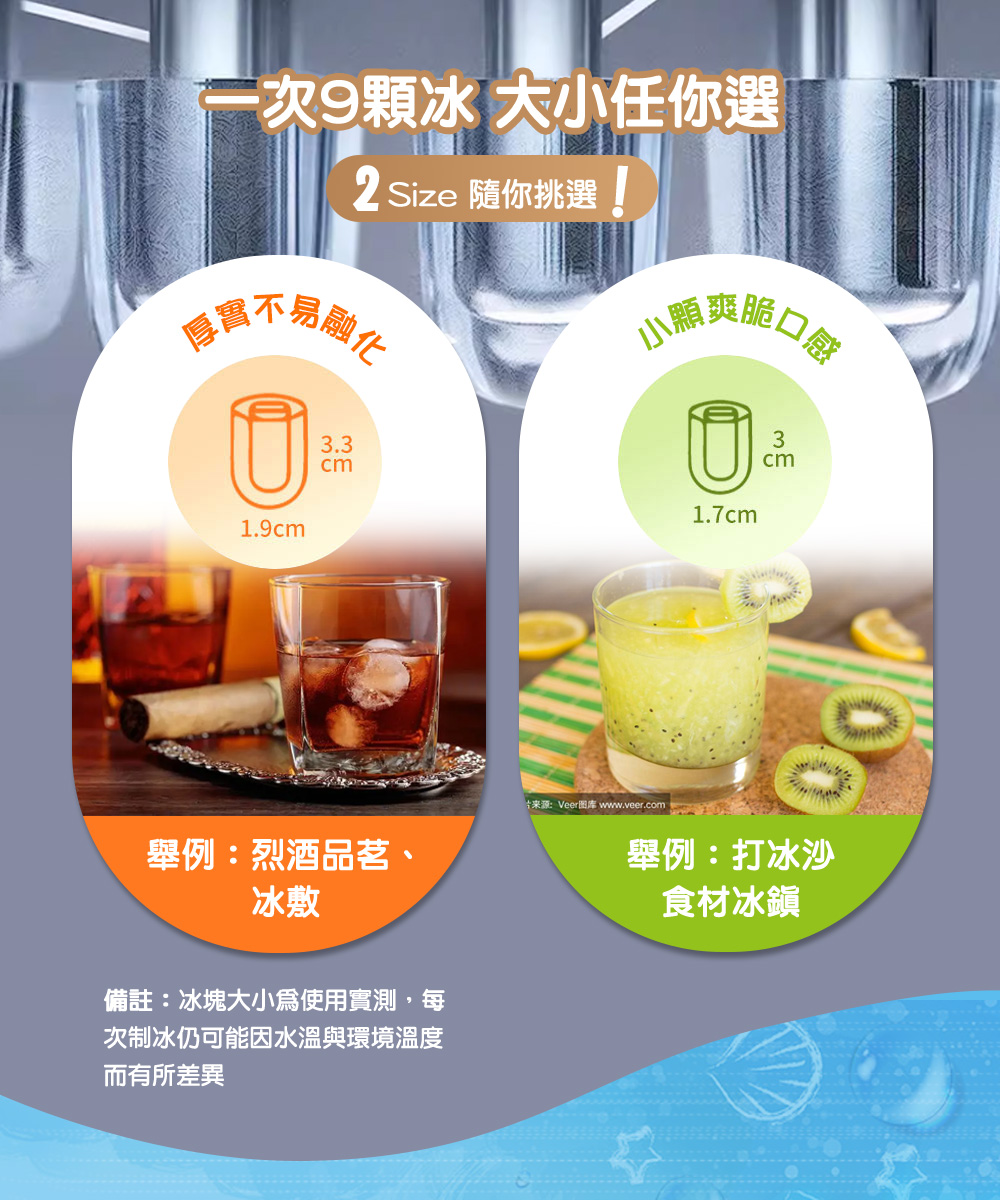 製冰規格:9pcs子彈冰