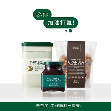嚴選無農藥殘留的芬蘭大燕麥片,溫火烘烤,呈現食物原本的美味。 天然細緻的果香甜味和溫潤的麥香,搭配馬修嚴選無糖優格,完整又豐富營養的一餐。
