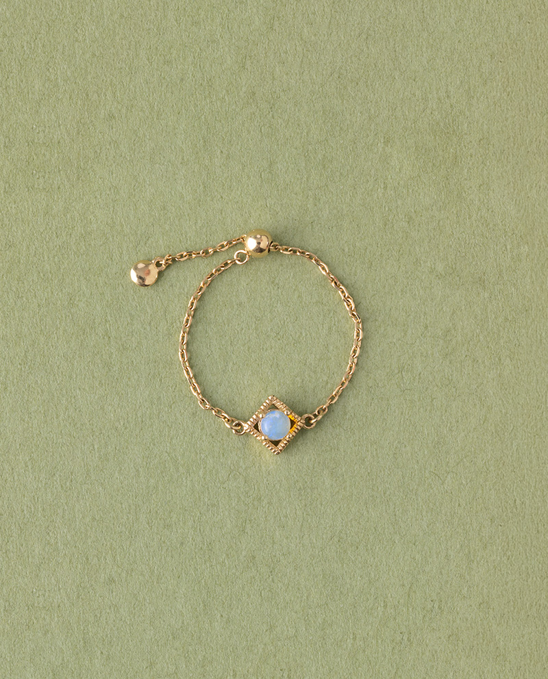 細緻金鍊作為戒身,鍊節小巧、間距均勻,配戴時自然貼合手指
