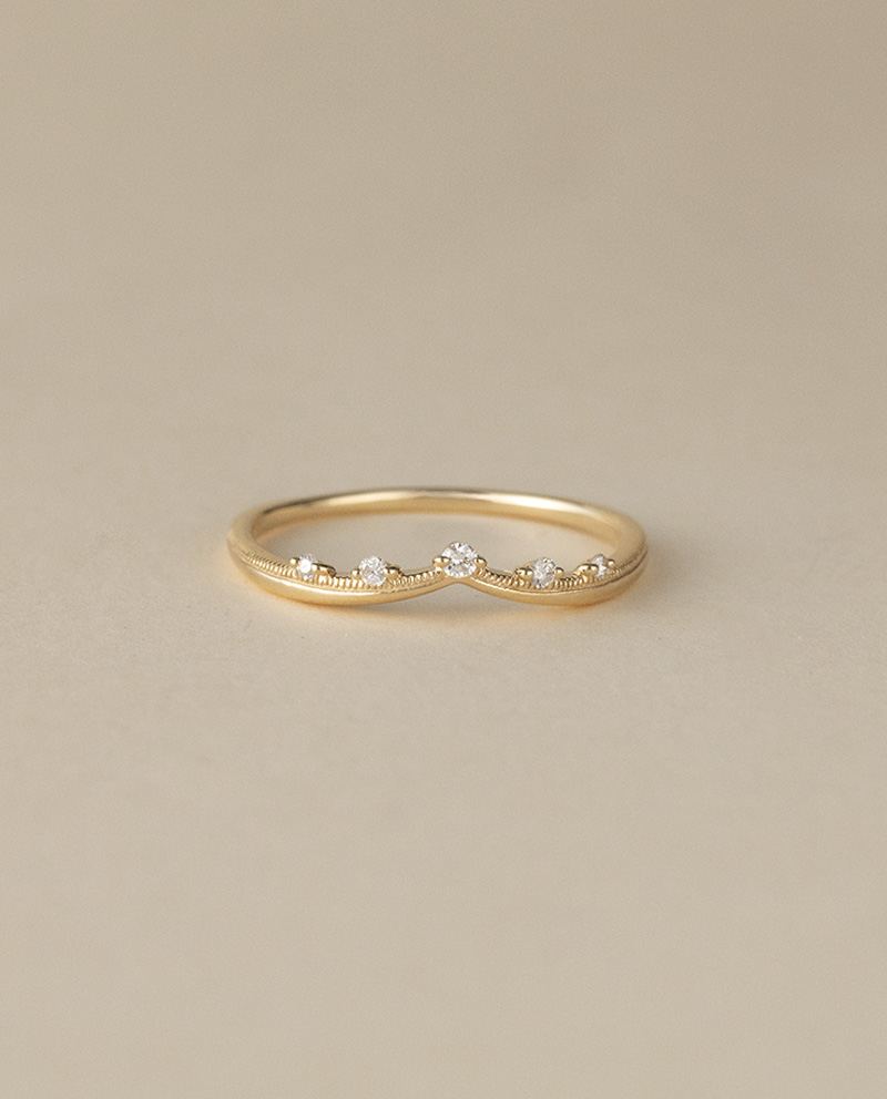 將鑽石以有節奏的排列方式鑲嵌於戒身之上,