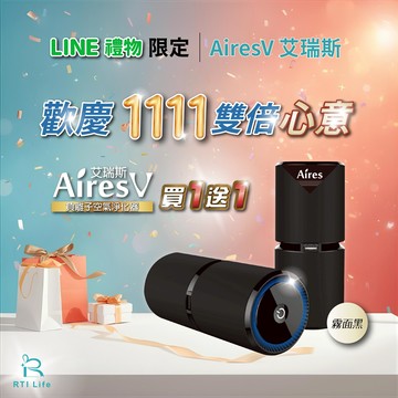 Super 11.11「買一送一」推薦優惠組合「AiresV 艾瑞斯 隨身/車用負離子空氣清淨器(霧面黑)」買一送一 雙倍好禮,雙倍心意-只在雙11