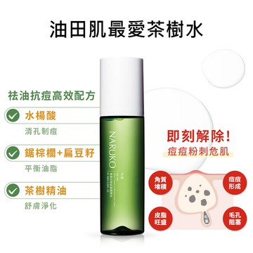 詳細介紹 產品特色 茶樹抗痘粉刺調理水是款油痘肌禦用的全能淨膚清脂水採調控油水、淨化代謝雙重淨痘配方概念以水楊酸、鋸棕櫚萃取、扁豆籽萃取及PO因子為主力從保養第一步積極調理油水平衡、對抗痘痘及暢通毛孔謝絕油膩膩膚觸與毛孔堵塞在抗痘戰爭中搶得致勝先機帶沁涼感的水漾質地協同多種保濕舒護成分減少油光的同時賦予輕潤舒緩感受回歸清新無負擔的純淨Fresh肌 產品介紹 進行肌膚零油光、清毛孔運動時只顧Cut油不補水是夏日油物們的保養大忌質地清涼、舒爽又兼具高飽水效能的茶樹抗痘粉刺調理水集結全方位的控油、角質代謝及保濕、舒緩配方先行做好淨化、軟化角質及油水平衡解肌渴的打底調理將油性肌常見油膩、毛孔粗大、粉刺、痘痘、黯沉、易敏感6大困擾通通一掃而空 功效 1.代謝老廢角質保持毛孔暢通。 2.促進角質正常代謝更新。 3.調理油脂分泌維持油水平衡。 4.預防痘痘、粉刺生成。 5.預防肌膚黯沉、淡化黯沉。 6.安撫、舒緩不適肌膚。 使用方法 早晚清潔肌膚後將化妝棉沾取約50元硬幣大小的量避開眼周使用於臉部肌膚。 特別注意 1.由於添加薄荷精油使用時會帶有清涼效果其清涼程度依個人膚質有所不同。 2.使用時請避開眼部肌膚若產生不適現象或是不慎將產品滲入眼睛請立即用大量清水沖洗乾淨。 3.三歲以下嬰幼兒不得使用。 適用膚質所有肌膚。特別推薦容易出油、毛孔粗大、有粉刺、痘痘困擾的肌膚使用。 商品規格 商品簡述 調控油水、 淨化代謝 雙重淨痘配方概念謝絕 毛孔粗大、 粉刺 、痘痘、黯沉、易敏感困擾 品牌 NARUKO 牛爾親研 規格 150ml 原產地 台灣 深、寬、高 4.4x4.4x17cm 淨重 204 g 保存環境 室溫 是否可門市/超商取貨 Y 商品屬性 有效期限 3年 注意事項 敏感肌膚小心使用。3歲以下兒童不得使用。 目的功效 代謝角質毛孔暢通調理油脂維持油水平衡預防痘痘、粉刺生成。 藥商許可執照: 藥商諮詢專線:0800-051-148 許可執照字號:北市衛藥販松字第620101C611號 藥商名稱:台灣屈臣氏個人用品商店股份有限公司 藥商地址:台北市松山區八德路四段760號11樓之1、之2及14樓 藥商諮詢專線:(02)27421234