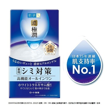 詳細介紹 肌研極潤完美多效美白凝露 100g Hada-Labo Gokujyun Whitening Perfect Gel 肌研極潤系列—對肌膚潤澤的極度堅持 美白對策嚴選高純度熊果素-衛福部公告有效美白成分能抑制麥拉寧色素生成改善因紫外線導致的黑斑、暗沉同時添加Allantoin-鎮定修護成分及雙重玻尿酸-保濕成分-洗臉後只要一瓶就能如面膜般賦予肌膚晶透煥白實現白皙美肌。 肌研極潤完美多效美白凝露 -嚴選高純度熊果素、維他命C衍生物深度美白肌膚 -凝露質地水感清爽不黏膩滑順好推展 -採用與健康肌膚相同的弱酸性 -低刺激性無添加香料、色素、礦物油、酒精 只要1瓶簡單實現5瓶功效All In One高機能美白凝露誕生! 化妝水 精華液 乳液 乳霜 晚安面膜 肌研是日本樂敦製藥研究中心研發的肌膚保養品牌。本著”Perfect & Simple”的理念嚴選對肌膚真正有效及有益的成分以製藥標準打造高品質產品帶給消費者安全無虞的信心美肌。 用途美白、潤澤保濕肌膚 用法早晚洗臉後取適量於掌心輕柔塗抹於全臉(無需再清洗) -因質地濃潤使用後請稍待其完全吸收或以面紙輕輕按壓再上粧 -可依個人膚況搭配其他保養品使用 6種有效美白潤澤成分添加 高純度熊果素 維他命C衍生物 Allantoin 玻尿酸 水解玻尿酸 水解膠原蛋白 深入滲透角質層 注意事項 -肌膚有傷口或紅腫、濕疹等異狀時請勿使用-若使用時肌膚出現紅腫、搔癢、刺激等異狀時請停止使用並就診-若不慎誤入眼睛請立即以清水沖洗-使用前建議先試用於手腕內側或下巴局部無過敏反應再使用於臉部-為保持最佳品質開封後請儘快使用完畢-請勿放於嬰幼兒可拿取處-請注意勿沾染至衣物上可能有無法完全洗淨之虞(因衣物材質而有別) -不得使用於三歲以下孩童 保存方法請蓋緊瓶蓋並置於陰涼處請勿放於高溫、低溫或陽光直射處 NET W.T.100g 保存期間3年 製造廠ROHTO PHARMACEUTICAL CO. LTD. 1-8-1 Tatsumi-nishi Ikuno-ku Osaka 544-8666 Japan 進口商台灣曼秀雷敦股份有限公司 台北市內湖區基湖路10巷57號6樓 消費者服務熱線0800-231-149 搭配使用其他肌研極潤系列產品讓肌膚享受最完美的保濕體驗 商品規格 商品簡述 打造水潤透亮美肌、5合1省時便利、無添加香料色素礦物油酒精 品牌 肌研 規格 100g 原產地 日本 深、寬、高 7.3x7.7x6.5cm 淨重 100 g 保存環境 室溫 是否可門市/超商取貨 Y 商品屬性 有效期限 3年 藥商許可執照: 藥商諮詢專線:0800-051-148 許可執照字號:北市衛藥販松字第620101C611號 藥商名稱:台灣屈臣氏個人用品商店股份有限公司 藥商地址:台北市松山區八德路四段760號11樓之1、之2及14樓 藥商諮詢專線:(02)27421234