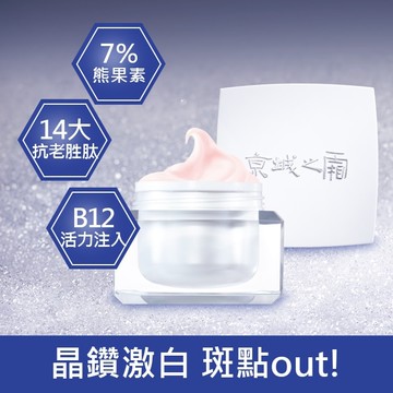詳細介紹 極光系耀眼膚 美白能量全開 為了趁睡眠黃金時段讓美白修護火力全開除了實力派的高濃度7%熊果素成分密集褪黑、以及維他命C糖苷還原肌膚明亮光澤之外特別添加來自近格陵蘭海域、覆蓋在舞動極光的天空水平面下2700公尺海洋活性物萃取的ARCTAILSTM極光耀白因子提升膚表光澤細緻度、讓肌膚無論在甚麼角度都閃耀光彩奪目的亮澤如北極光灑下輕幔般迷人。 絲光水凝彈潤膚 緊緻平滑一抹到位 不僅美白效能開最大值在追求完美陶瓷肌的同時當然也不容許乾癟鬆弛等NG膚況。來自法國布列塔尼半島的Regenesea褐糖藻萃取(Laminaria Saccharina)承載著幫肌膚老化踩剎車的重大任務阻止一連串失控的老化反應。搭配14大煥顏胜肽以及掃除疲態倦容、提升肌膚活力的維他命B12輕鬆達成一站式的美白.保濕.撫紋。 行動美白保濕點滴 長效禦黑鎖白 美白不能只有三分鐘熱度必須要全年度滴水不漏的持續肌褪黑、還原白超激光束美白精華霜的長效穩定配方如同肌膚的行動美白保濕點滴全天候亮顏超給力。搭載維他命B12所呈現的自然珊瑚粉色霜體為緊繃黯沉的壓力肌釋放負能量導入療癒活力才能真正還原白且KEEP白。 使用功效 1.美白並維持光澤膚色賦予柔嫩皙透 2.預防並改善肌膚老化減少細紋生成 3.維持肌膚彈力恢復緊緻 4.有效補水、滋養修護維持水嫩膚觸 5.溫和舒緩並安撫肌膚 使用方法晚清潔與基礎保養後以挖棒取出約5元硬幣大小的量均勻延展於臉部肌膚 適用膚質所有肌膚 商品規格 商品簡述 獨家睡眠耀白科技 海藻美療級抗老修護 柔幻珊瑚粉紅水凝質地 品牌 JINGCHENG 京城之霜 規格 28g 原產地 台灣 深、寬、高 8x8x6.8cm 淨重 125 g 保存環境 室溫 是否可門市/超商取貨 Y 商品屬性 有效期限 三年 注意事項 敏感肌膚小心使用。 目的功效 美白、保濕、預防老化修護肌膚。