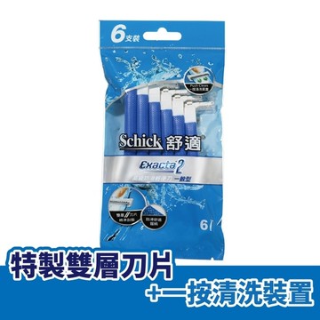 Schick 舒適牌 Exacta 2 高級防滑輕便刀 一般型 雙層刀片 精準刮鬍 防滑舒適握柄 一按清洗裝置 6支 3包