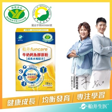 詳細介紹 船井牛奶鈣魚膠原粉15包入(成長水解配方) 衛福部核准骨質保健健康食品 骨骼保健、成長補給 成長三要素優質牛奶鈣+魚膠原蛋白質+維生素D3水解配方小分子好吸收 三效合一完整配方 幫助健康成長 兒科醫師王詩婷、專科醫師王樂明唯一指定推薦 王仁甫/蔡阿嘎/陳冠霖/楊羽霓等知名藝人家長真實見證推薦 天然鈣(牛奶鈣+乳酸鈣)每包添加量1950毫克 鈣有助於維持骨骼與牙齒的生長發育 蛋白質有助於組織的修復是肌肉合成的來源之一並可用於肌肉生長 維生素D可維持神經、肌肉的正常生理以及增進鈣吸收 通過 運動禁藥檢測208項全數未檢出 通過 國際級實驗室814項高標準安全檢測合格 不含任何香料、色素、西藥、激素、賀爾蒙、防腐劑 不含衛福部公告之13種過敏原 榮獲 世界品質評鑑大賞 最高榮譽特金獎 榮獲 SNQ 國家品質標章 支持孩子每個夢想 注意事項 1.請徵詢醫師或營養師有關食用本品之意見均衡的飲食及適當的運動為身體健康之基礎。 2.多食或過量無益。 3.本產品不能治療矯正任何疾病有病者仍需就醫。 4.本產品供保健用請依建議攝取量食用。 本產品已在台灣投保富邦產品責任險新台幣5000萬元整投保金額不等同於理賠金額。 詳細產品資訊請見外盒包裝產品包裝如有異動請以實際收到之產品為準。 未經本公司同意所有文字及圖片均不得轉載或散佈或公開播送或有其他侵害權利之一切行為。 商品規格 商品簡述 衛福部核准骨質保健健康食品 三效合一完整配方 品牌 船井生醫 規格 15包/盒 原產地 台灣 深、寬、高 10x5x15.5cm 淨重 120 g 保存環境 室溫 是否可門市/超商取貨 Y 商品屬性 投保產品責任險 富邦產品責任險新台幣5000萬元整 製造日期 如外盒標示保存期限為2年 包裝份量 15入/盒 食品業者登錄字號 B-186976681-00000-0 廠商資訊 製造商名稱 船井生醫股份有限公司 製造商電話 04-2259-9696 製造商地址 台中市西屯區市政北一路77號9樓之2 製造商服務專線 0800-000-888 製造商服務時間 09:00-17:00 藥商許可執照: 藥商諮詢專線:0800-051-148 許可執照字號:北市衛藥販松字第620101C611號 藥商名稱:台灣屈臣氏個人用品商店股份有限公司 藥商地址:台北市松山區八德路四段760號11樓之1、之2及14樓 藥商諮詢專線:(02)27421234