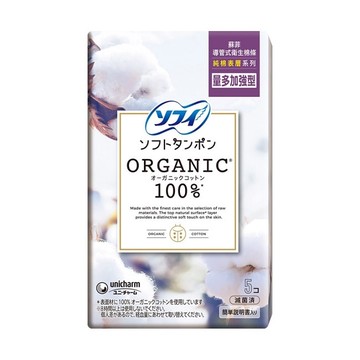 SOFY蘇菲導管式純棉表層量多加強型5入(包裝隨機出貨)