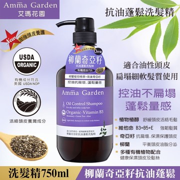 Amma Garden 艾瑪花園 抗油蓬鬆洗髮精 柳蘭奇亞籽 適用於油性頭皮及扁塌髮質 500ml 1瓶