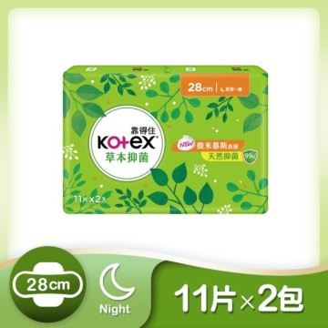 Kotex 靠得住 草本抑菌夜用衛生棉(28cmX12片/包)【杏一】