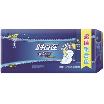 好自在乾爽瞬潔絲薄量多日夜用28cm 16片2入+8片1入