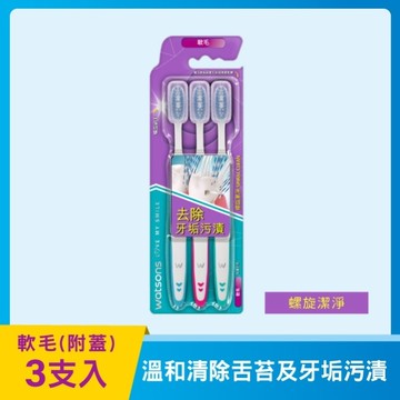屈臣氏螺旋潔淨牙刷(軟毛附蓋)3入