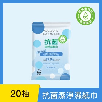 屈臣氏抗菌潔淨柔濕巾20片3入