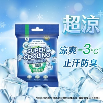 屈臣氏超涼感抗菌濕巾30片-清爽薄荷(身體用)
