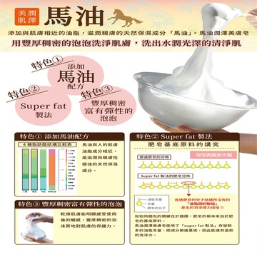 詳細介紹 來自日本的 Pelican 馬油潤澤美膚皂 II特別針對乾燥、敏感肌膚設計。以珍貴的 馬油 為主要成分能快速滲透角質層補充肌膚所需油分帶來長效滋潤同時保有清爽不黏膩的洗感。 深層滋潤洗後不緊繃 馬油結構與人體皮脂相近能迅速吸收為乾燥肌注入潤澤。 綿密泡沫溫和清潔 起泡豐富細緻能包覆髒污並徹底潔淨同時保持肌膚柔滑。 溫和不刺激敏感肌也安心 適合乾燥、脆弱肌膚洗後仍能感受到滋養與柔嫩。 日本熱銷經典 Pelican 品牌擁有 60 年以上專業製皂經驗此款馬油皂在日本長年暢銷口碑極佳。 成分亮點 馬油深層補水修護乾燥肌膚 天然皂基溫和清潔不刺激 滋潤保護膜洗後肌膚柔嫩水潤 使用方法 將皂體沾水搓揉出綿密泡沫。 將泡沫輕輕按摩全身肌膚。 以清水沖洗乾淨即可感受滑潤不乾澀。 建議每日使用全身肌膚皆適用特別推薦給 乾燥粗糙或敏感膚質。 適合對象 想改善乾燥、缺水膚質的人 追求溫和清潔、不緊繃洗感的人 敏感肌、乾燥肌或喜愛高保濕潔膚產品的人 想體驗日本熱銷經典馬油護膚的人 商品規格 商品簡述 Pelican馬油潤澤美膚皂II 80g 品牌 PELICAN 原產地 日本 深、寬、高 26x8x8cm 淨重 80 g 容量 80 ml 保存環境 室溫 是否可門市/超商取貨 Y 商品屬性 有效期限 五年 廠商資訊 製造商名稱 奕澄企業有限公司 藥商許可執照: 藥商諮詢專線:0800-051-148 許可執照字號:北市衛藥販松字第620101C611號 藥商名稱:台灣屈臣氏個人用品商店股份有限公司 藥商地址:台北市松山區八德路四段760號11樓之1、之2及14樓 藥商諮詢專線:(02)27421234