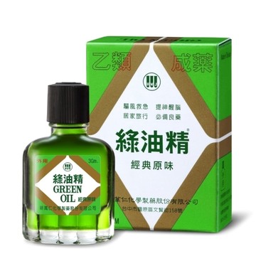 詳細介紹 藥商諮詢專線0800-228-080 一、醫療藥品許可證 品名綠油精Green Oil - 醫療藥品許可證所載製造廠名稱 新萬仁化學製藥股份有限公司 - 製造廠地址台中市豐原區文賢街158號 - 消費者使用前應詳閱產品說明書 - 製造日期請見產品外包裝 - 有效期間或保存期限5年 二、藥商許可執照 藥商諮詢專線0800-051-148 許可執照字號北市衛藥販松字第620101C611號 藥商名稱台灣屈臣氏個人用品商店股份有限公司 藥商地址台北市松山區八德路四段760號11樓之1、之2及14樓 藥商諮詢專線(02)27421234 相關查詢連結 設立許可證明文件(藥局、藥商) - 查詢連結衛生福利部首頁(www.mohw.gov.tw)/醫事機構查詢及醫事人員查詢 登記證明文件(百貨店、雜貨店、餐旅服務商) - 查詢連結全國商工行政服務入口網首頁(http//gcis.nat.gov.tw)/商工查詢服務 藥品許可證 - 可供查詢連結 o西藥、醫療器材、含藥化粧品許可證查詢衛生福利部食品藥物管理署(www.fda.gov.tw)/業務專區/藥品/資訊查詢/藥物許可證暨相關資料查詢作業/西藥、醫療器材、含藥化粧品許可證 o中藥許可證查詢衛生福利部中醫藥司(www.mohw.gov.tw/cht/docmap)/中藥藥品許可證查詢 注意消費者使用前應詳閱藥品仿單(說明書) 商品規格 商品簡述 乙)綠油精 3g 品牌 新萬仁 規格 3g 原產地 台灣 深、寬、高 1.8x4x6.5cm 淨重 3 g 保存環境 室溫 是否可門市/超商取貨 Y 商品屬性 藥品許可證核准字號 內衛成製字 第001347號 業者許可證明文件 中縣藥製字第6136010016號 綠油精藥證查詢 001347.pdf 藥品成份 有效成分及含量(每公克) Menthol 310mg Methyl Salicylate 200mg Camphor 30mg 藥品適應症 頭眩鼻塞、肚痛、頭痛、小兒腹痛、胸膈不舒、蚊蟲咬傷、止癢消腫 製造日期 請見產品外包裝 有效期限 五年 藥品標籤、仿單、包裝所載明之副作用、禁忌或其他注意事項 曾因本藥成分引起過敏的人請勿使用。 使用方式 外用每日數次塗抹於患處。 衛福部所核准之藥品包裝及仿單(說明書)圖片 藥品包裝 綠油精經典3g 支盒-01.jpg 可供查詢連結 http://www.fda.gov.tw/MLMS/H0001.aspx 廠商資訊 製造商名稱 新萬仁化學製藥股份有 製造商電話 04-25269105 製造商地址 台中市豐原區文賢街號 製造商服務專線 0800-228080 製造商服務時間 08:00-17:00 藥商許可執照: 藥商諮詢專線:0800-051-148 許可執照字號:北市衛藥販松字第620101C611號 藥商名稱:台灣屈臣氏個人用品商店股份有限公司 藥商地址:台北市松山區八德路四段760號11樓之1、之2及14樓 藥商諮詢專線:(02)27421234