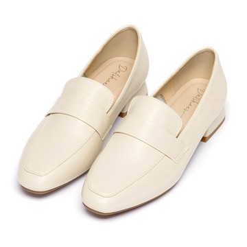 素面馬銜扣真皮樂福鞋-米白
