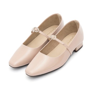 尖頭寬帶方釦漆皮瑪莉珍鞋 米白色