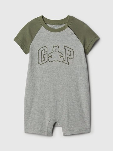 嬰兒裝 Logo純棉小熊刺繡圓領短袖包屁衣/連身衣-灰綠拼接