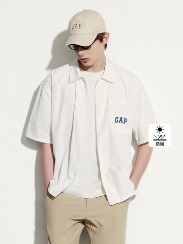 男裝 Logo防曬印花翻領短袖襯衫-米白色