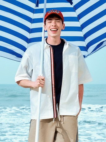 男裝 純棉翻領短袖襯衫-白色