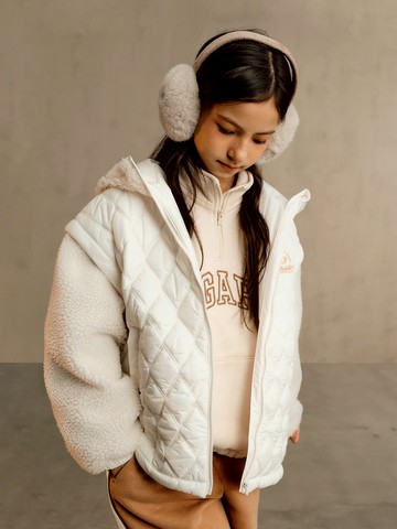 女童裝 Logo刺繡連帽外套-象牙白