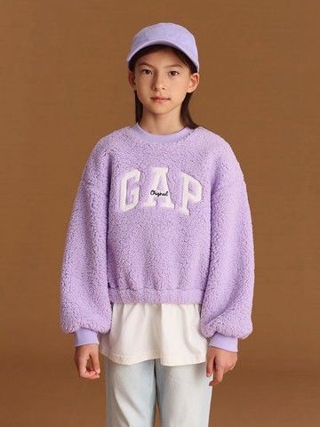 女童裝 Logo刺繡圓領長袖上衣-紫色