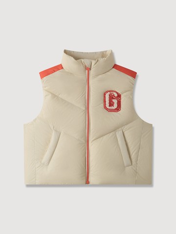 兒童裝 Logo刺繡防風立領羽絨背心外套(1-14歲)-米色