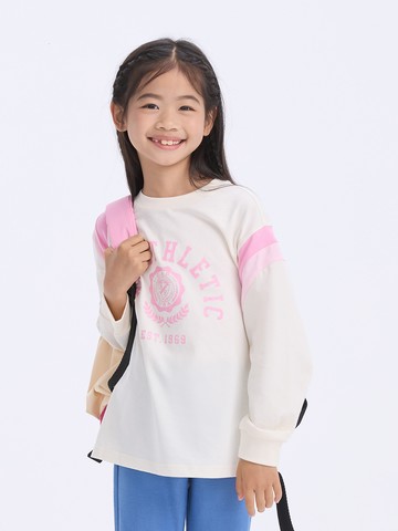 女童裝 Logo純棉印花圓領長袖上衣-米白色
