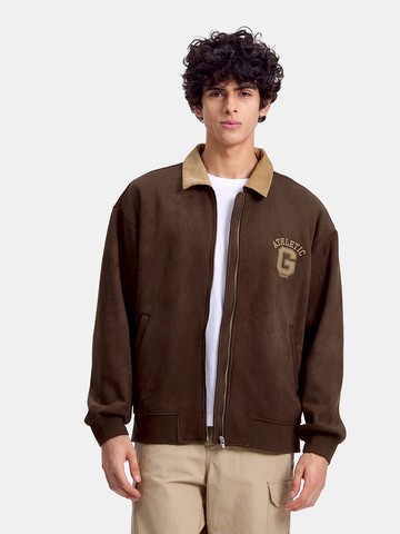 男裝 Logo刺繡翻領外套-棕色