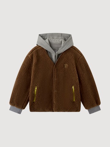 男童裝 Logo刺繡假兩件連帽外套-棕色